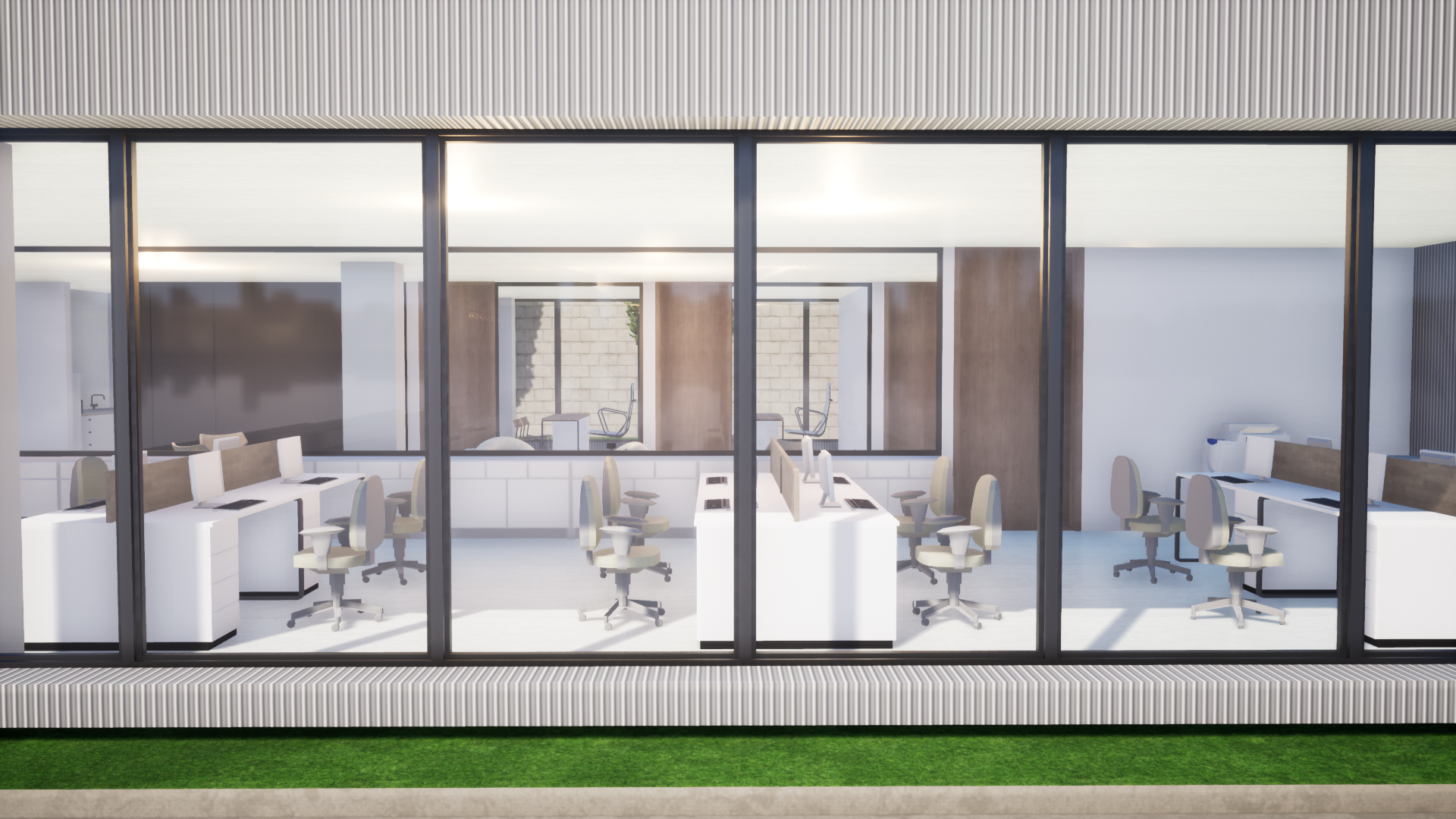 Una propuesta funcional frente a la necesidad del cliente resumida en tres escenarios principales: oficinas privadas, administración general con 20 puestos de trabajo y un espacio central flexible que funciona como integrador físico y visual de todos los espacios, y a su vez responde como propuesta para entender una alternativa actual de espacio de trabajo abierto que mejora la interacción, la comunicación y la motivación de los trabajadores.