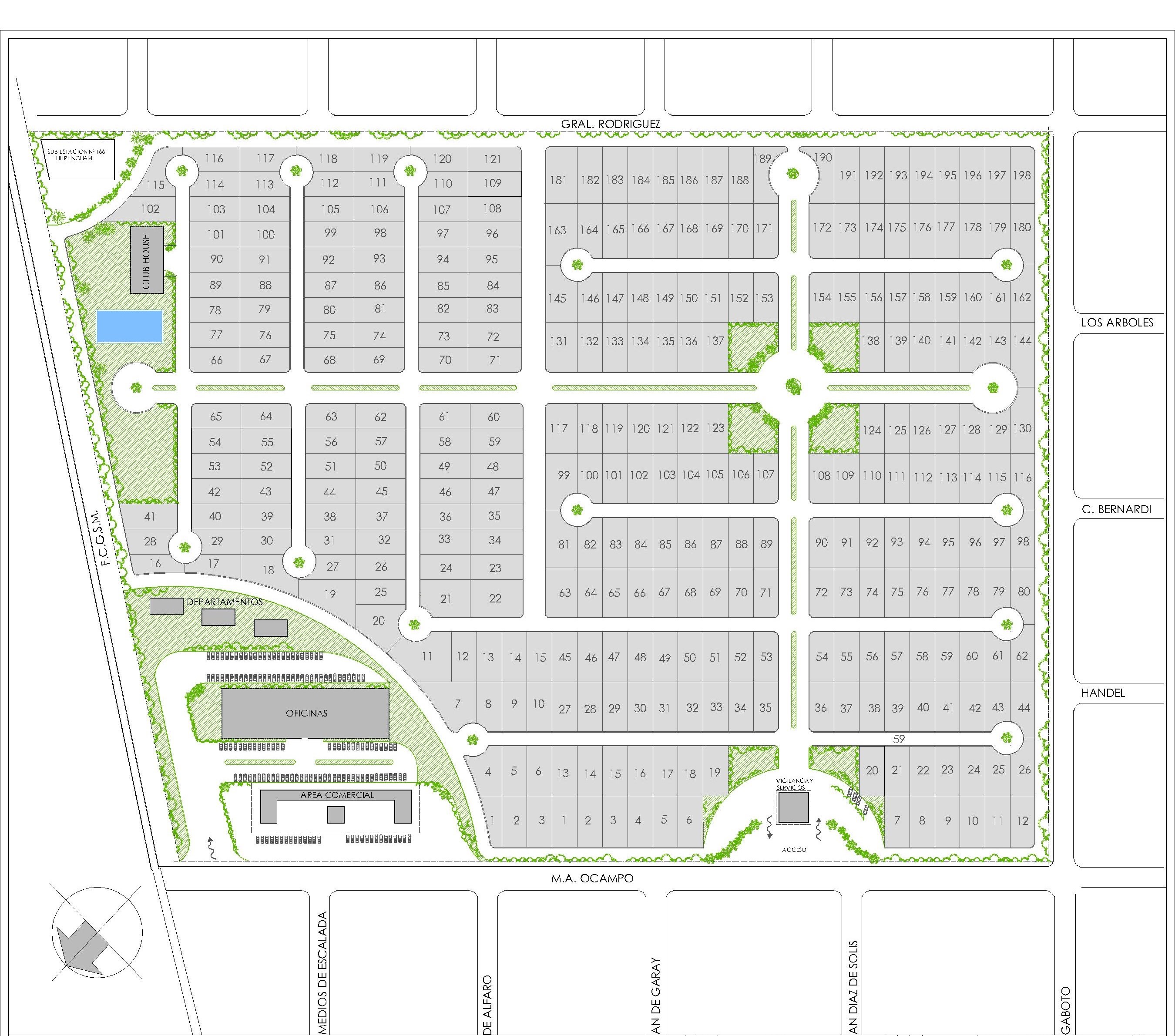 Se realizó un plan de loteo formado por 198 lotes de 30 m X 15 m, destinados a viviendas.
