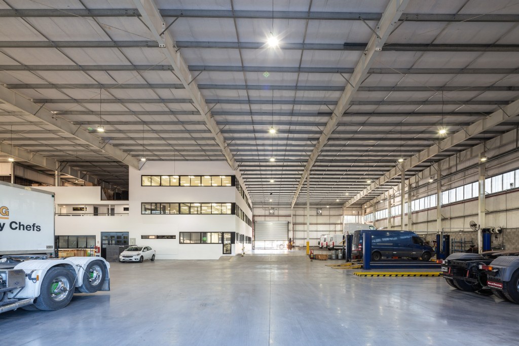 Primero se construyó la nave principal adosada al edificio existente para la ampliación del taller y el nuevo sector de oficinas.
