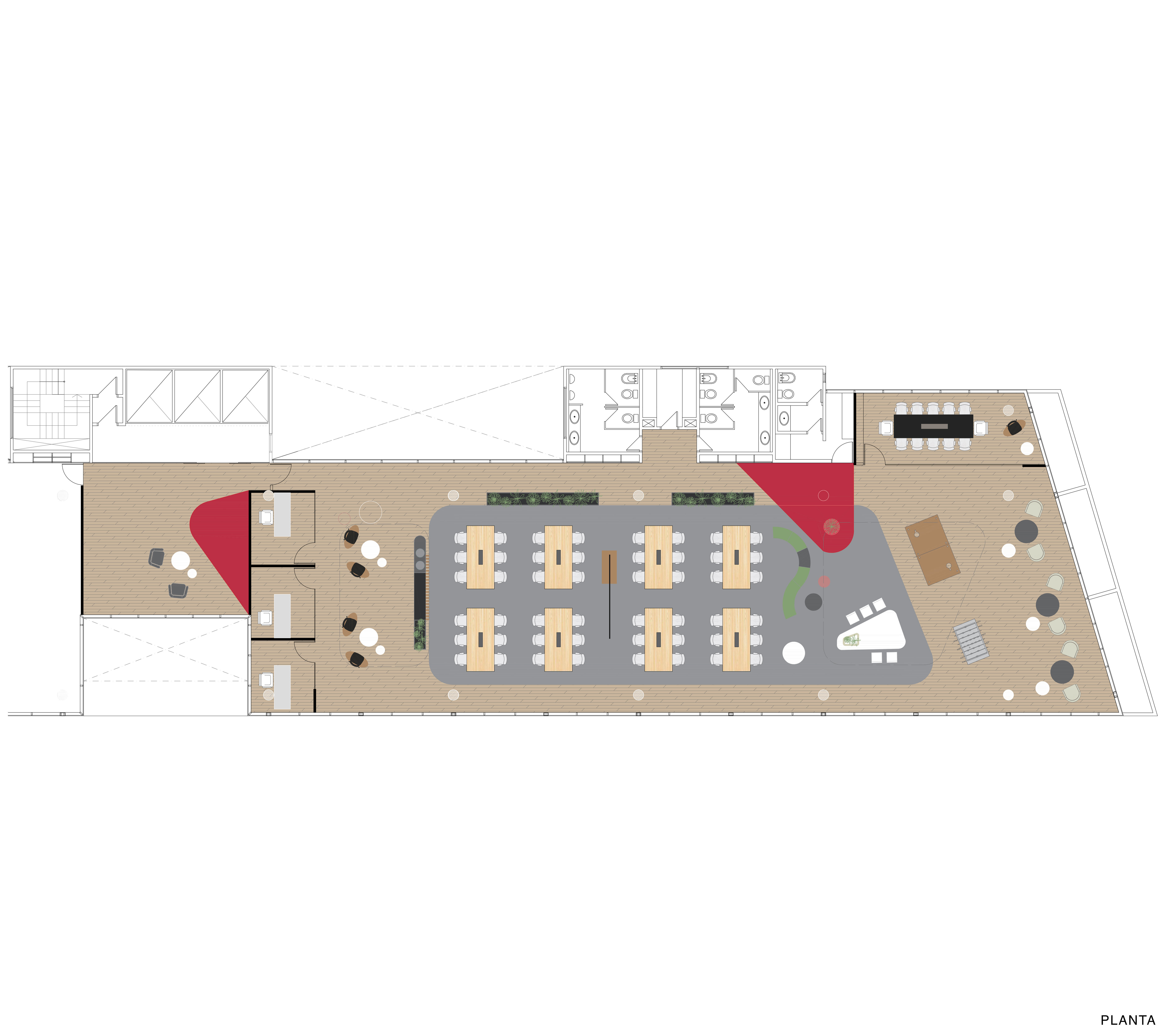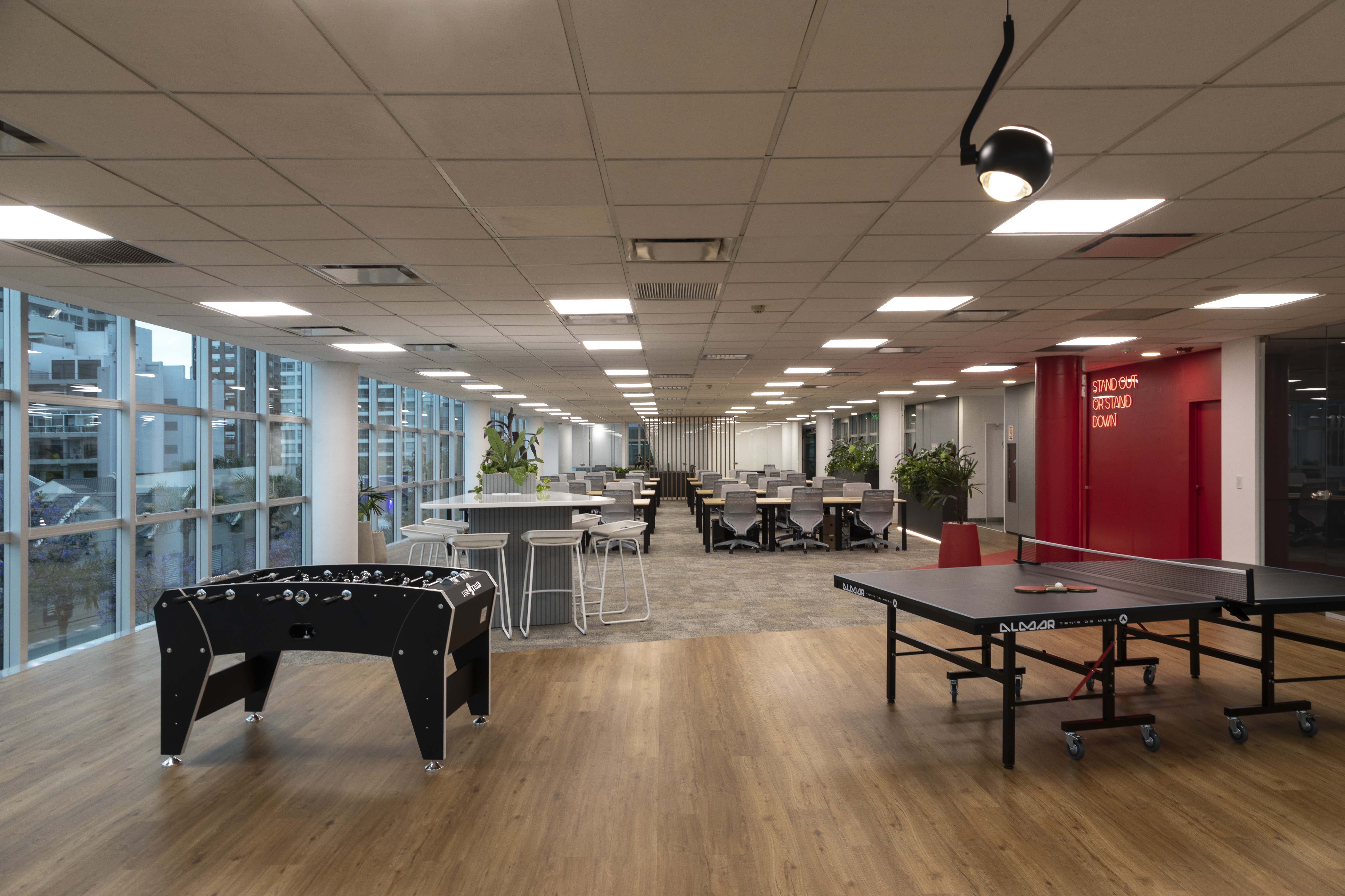Diseño de espacios abiertos, áreas de flexibilidad para el desarrollo del entretenimiento que busque impulsar el intercambio y la innovación.
